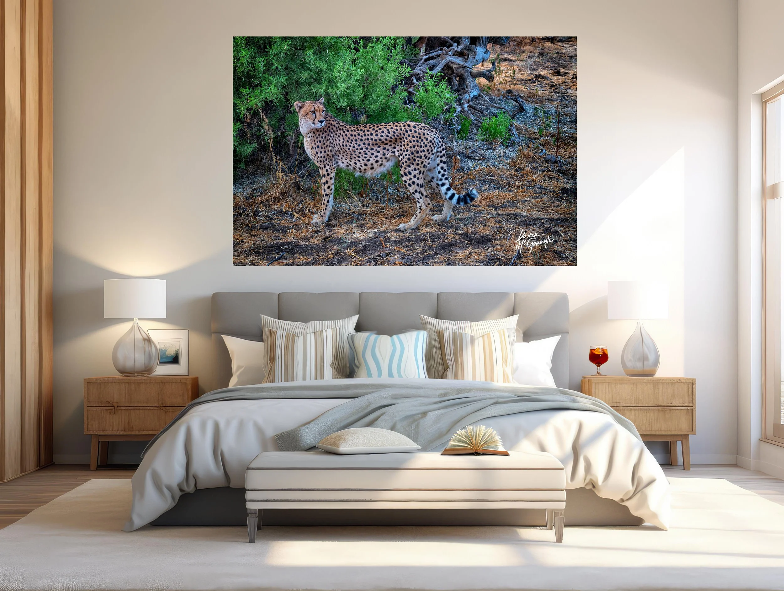 The composition artfully weaves the cheetah into Botswana’s lush, contrasting surroundings, telling a visual story of survival and serenity. This fine art photography print is a testament to photographic art, inviting viewers to experience the cheetah’s noble spirit within its homeland’s grandeur. Available as part of our fine art photography gallery, this image brings a captivating wildlife moment into your space. Ideal for collectors seeking large wall art, landscape photo prints, and unique photography artwork, "Graceful Sentinel of Botswana" offers a timeless addition to any photography gallery or collection.